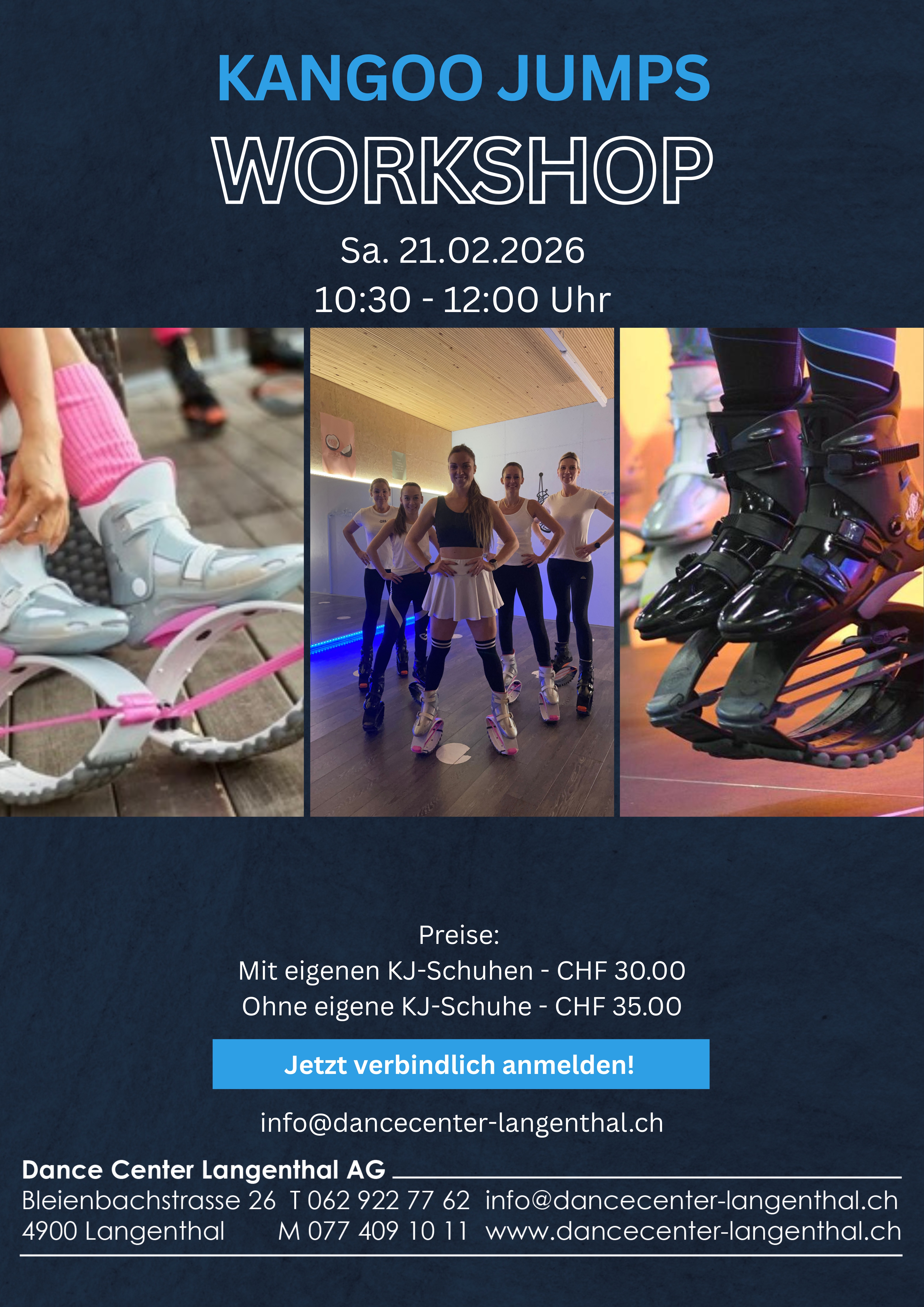 Kangoo Jumps Workshop am 21.02.2026 von 10:30-12:00 Uhr bei uns im Dance Center. Melde dich jetzt via SportsNow-App an. Wir freuen uns auf dich.