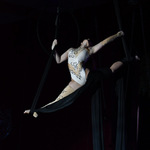 Anastasiia à 11 ans d’expérience sportive et se forme pendant huit ans en école de cirque avant de se spécialiser en gymnastique aérienne. Depuis plus de trois ans, elle approfondit sa pratique et développe sa technique avec exigence et constance.