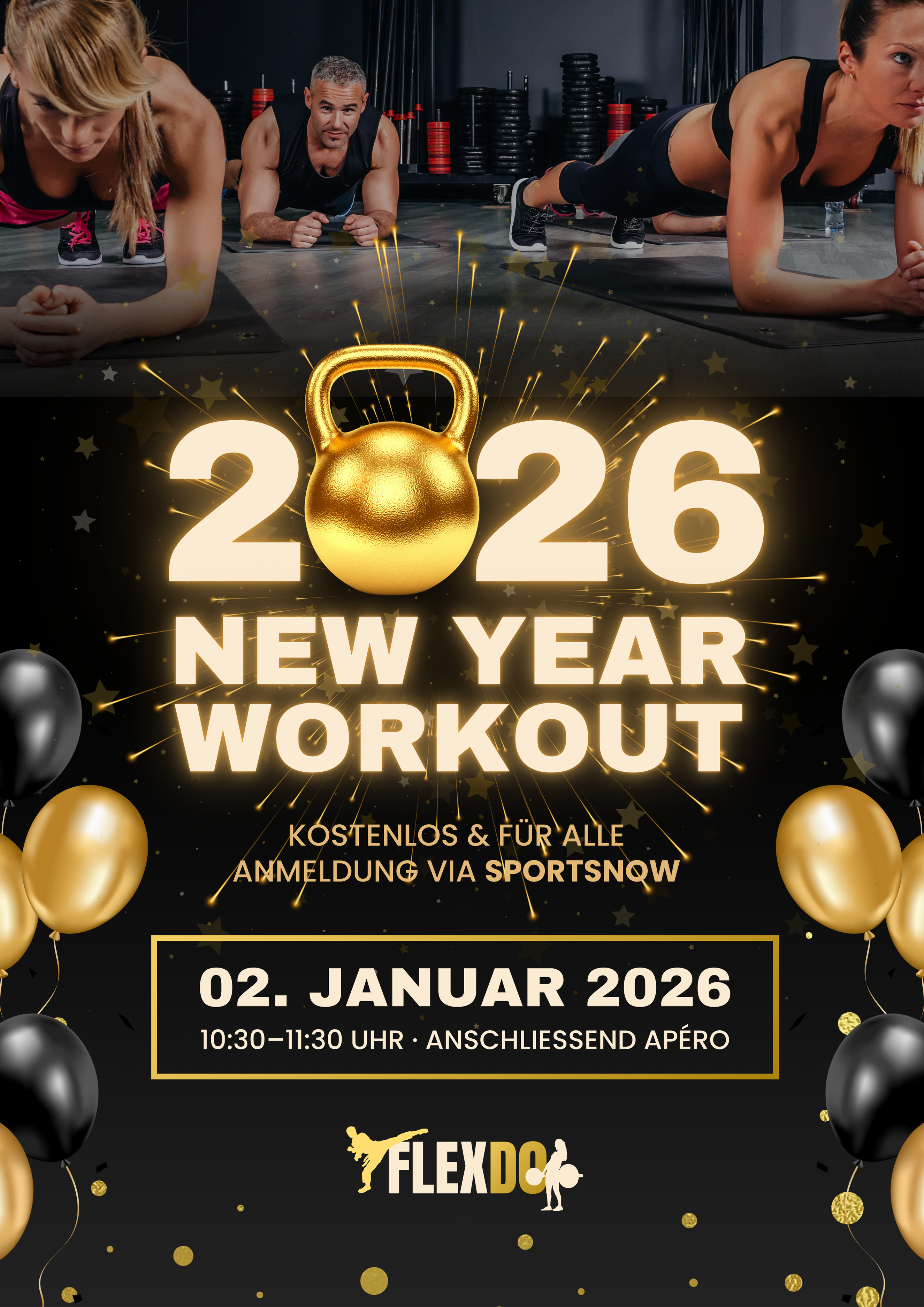 Am 2. Januar 2026 starten wir gemeinsam ins neue Trainings-Jahr 🚀. Das New Year Workout ist kostenlos und für alle Levels sowie alle Sparten geeignet. Willkommen sind nicht nur alle Mitglieder, sondern auch Freunde, Bekannte und alle, die gerne reinschnuppern möchten 👋. Im Anschluss laden wir euch herzlich zu einem Apéro mit kleinen Leckereien ein 🥂🍴. ⚠️ Die Plätze sind limitiert – bitte frühzeitig anmelden. 👉 Anmeldung über unsere Website oder direkt via SportsNow.