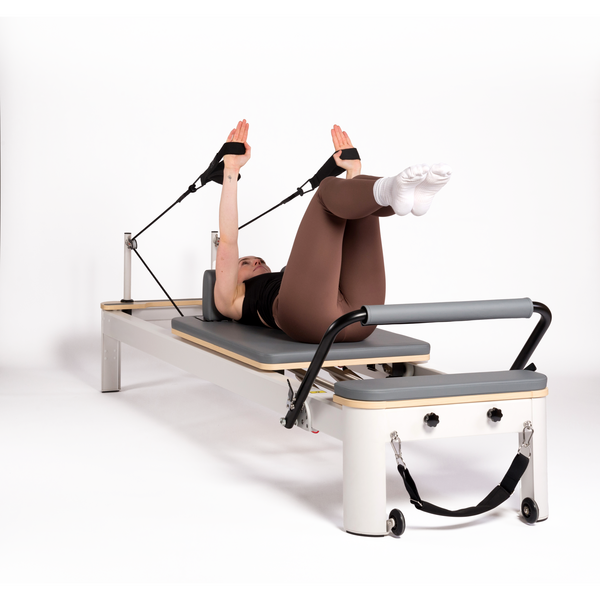 Pilates mit dem Reformer ist ein vielseitiges und höchst effizientes Ganzkörper-Training (der Fokus liegt im Stärken und Stabilisieren des Rumpfes wie Beckenboden, Bauch und Rücken), dass dir