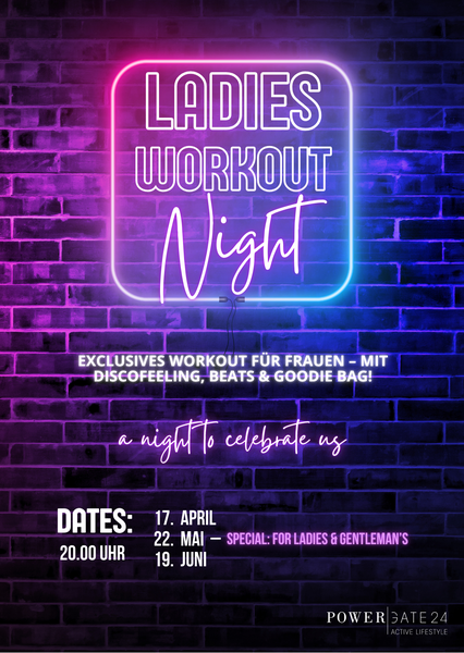 Die Ladies Workout Night ist dein monatliches Fitness-Event mit powervollen Beats und Disco-Licht.