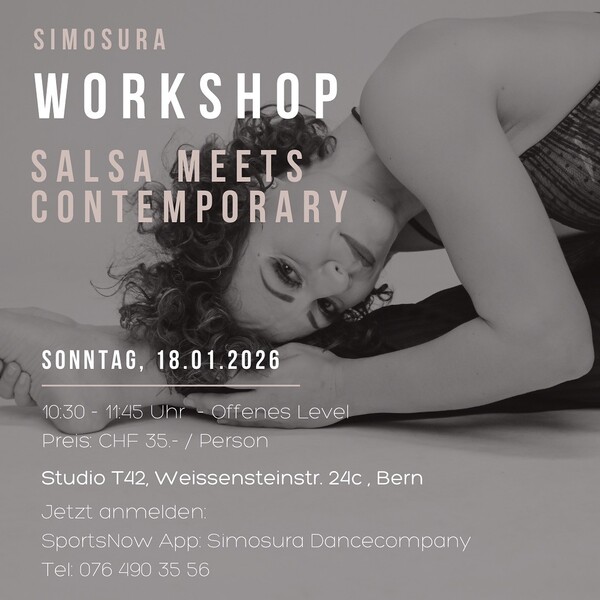 Lass zeitgenössische Tanzelemente mit den heissen Rhythmen der Salsa verschmelzen. Liebst du es rhythmisch, erdverbunden und voller Leben? Dieser brandneue Tanzstil verleiht dir genau dieses einzigartige Feeling. Entwickle deine Ausdrucks- und Bewegungsmöglichkeiten weiter und lass dich vom Flow mitreißen. Egal auf welchem Niveau du tanzt, alle sind herzlich willkommen! Sei dabei und spüre die Fusion von Tradition und Moderne auf der Tanzfläche!