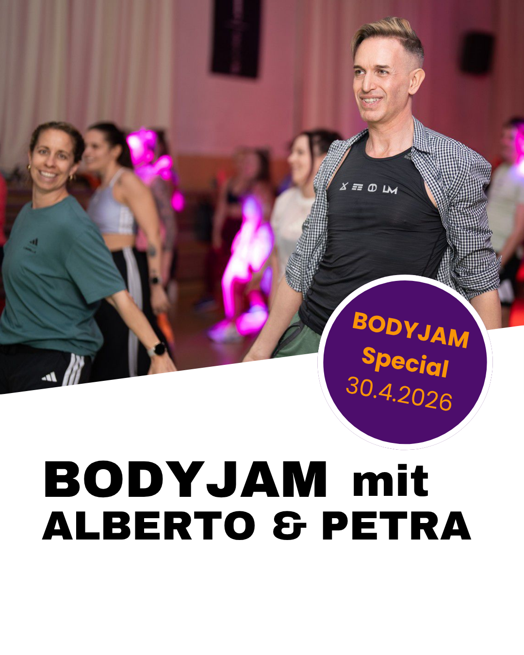 Zwei BODYJAM Legenden vereint! Am 30.4.2026 heizen wir so richtig mit einem BODYJAM Special ein. Mach mit ab 19 Uhr im Steiger Training! Anmelden kannst du dich ab sofort!