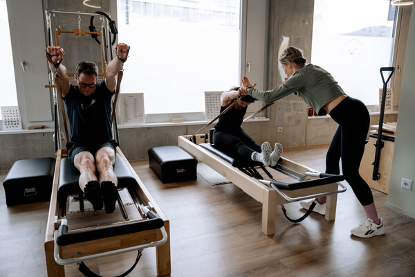 Intensives Personal Training zu zweit – am Reformer, der Wall Unit (Tower) oder kombiniert mit anderen klassischen Pilates-Geräten. Die Übungen werden individuell auf euch beide abgestimmt – je nach Level, Ziel und Tagesform.
