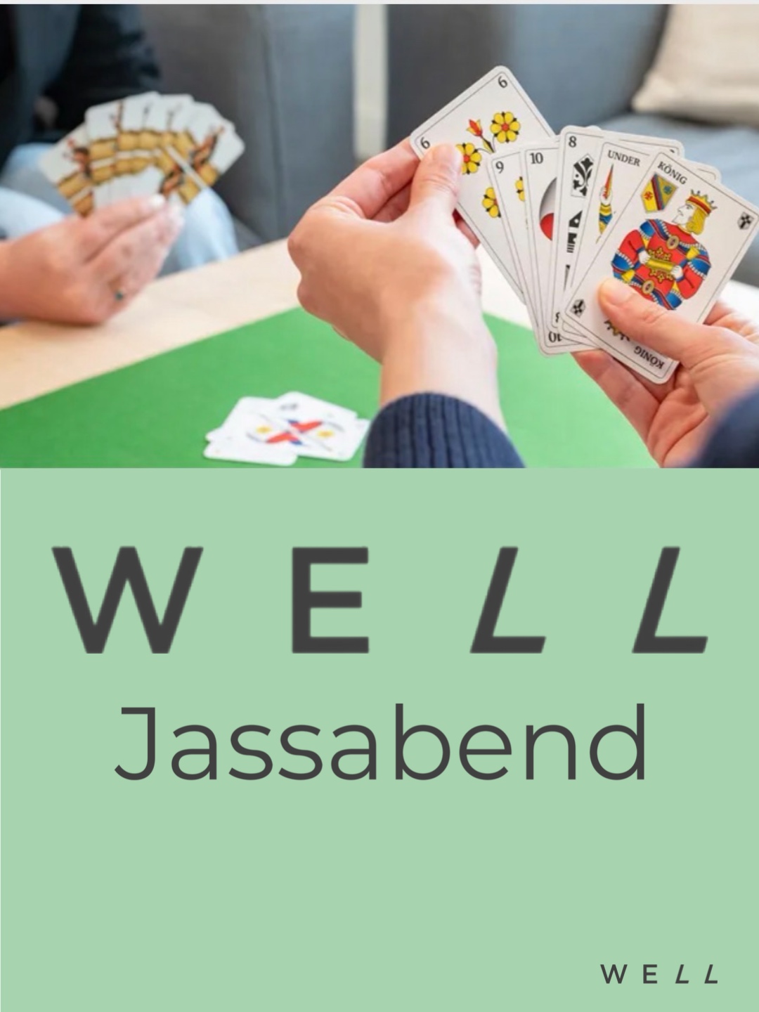 Gemeinsam lachen, spielen und den Alltag für einen Abend hinter sich lassen – genau darum geht es beim WELL Jassabend. Freu dich auf einen entspannten Abend in guter Gesellschaft, bei dem nicht nur die Karten zählen, sondern vor allem das Zusammensein. Abwechslungsreiche Runden, spannende Begegnungen und viel Raum für gute Gespräche machen den Abend zu etwas Besonderem. Mentale Fitness trifft Geselligkeit. Ohne Druck, dafür mit viel Leichtigkeit, Genuss und echten feelWELL Moments. Egal ob Jass-Profi oder Gelegenheitsspieler – bei uns zählt das Dabeisein. 📅 Freitag, 10. April 2026 🕢 ab 19.30 Uhr 💰 CHF 20.– (inkl. Getränke) 👉 Sichere dir jetzt deinen Platz: Info@well.swiss